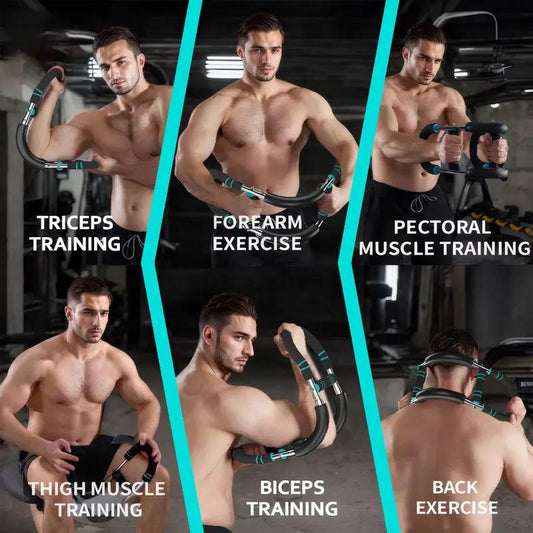 Arm Trainer for Men - Full Upper Body Fitness Equipment with High Strength Metal Spring & Anti-Slip Foam Handles - Portable & Detachable Home Gym Workout Bar for Chest, Arms, Biceps, Abs, Shoulders, and Back Exercises