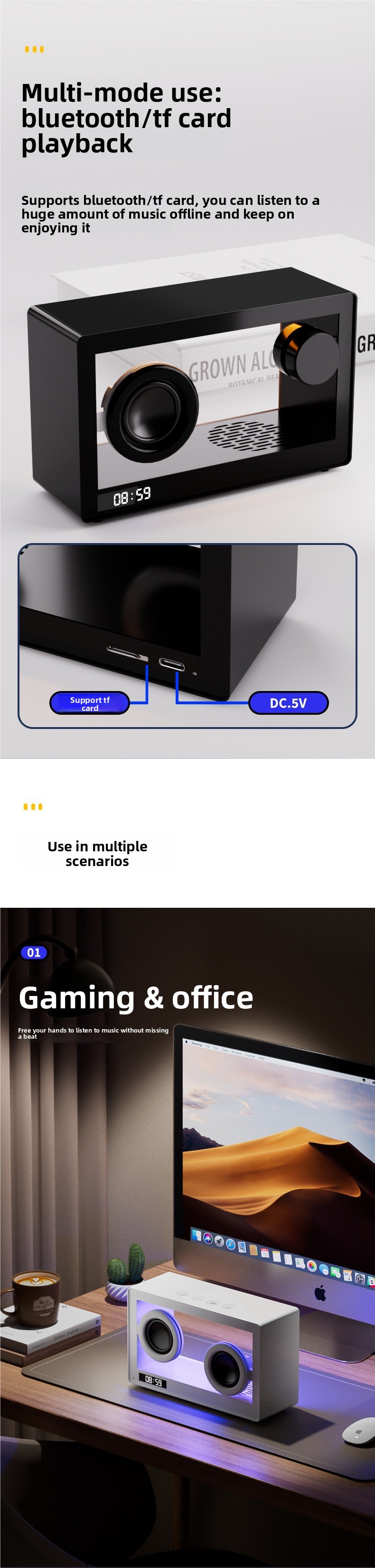 Connectivity: USB powered, Bluetooth, optional???? (TF card support)