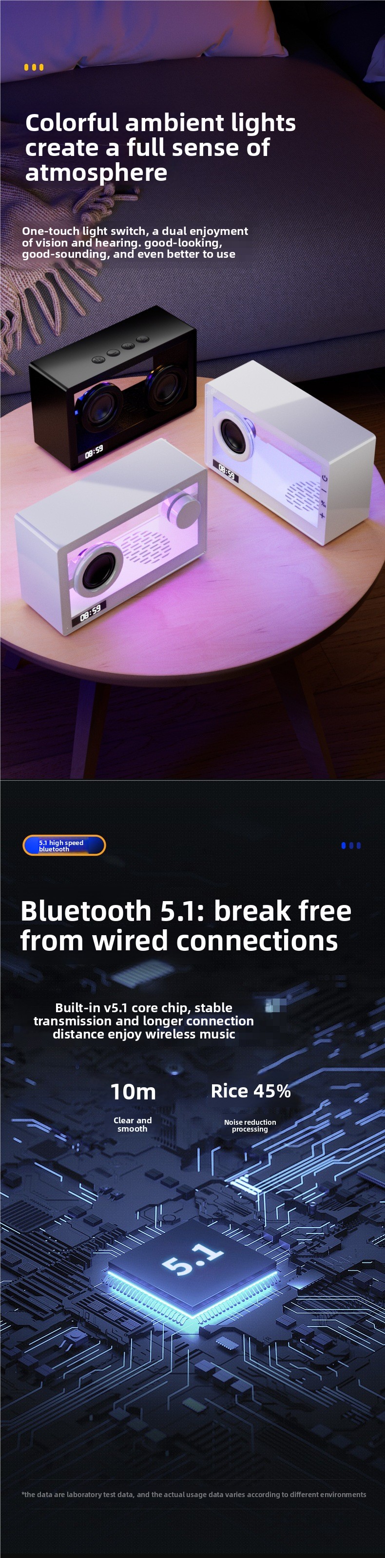 Bluetooth Connectivity: Supports wireless audio streaming via Bluetooth 5.1 with a 15m range.