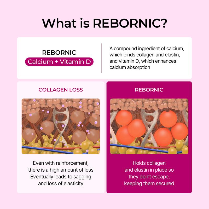 - REBORNIC, a patented ingredient that enhances calcium absorption for firmer, more elastic under-eye skin
