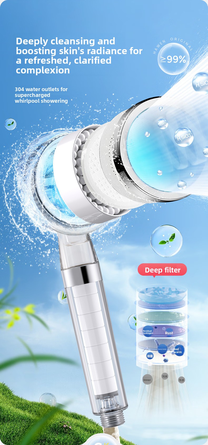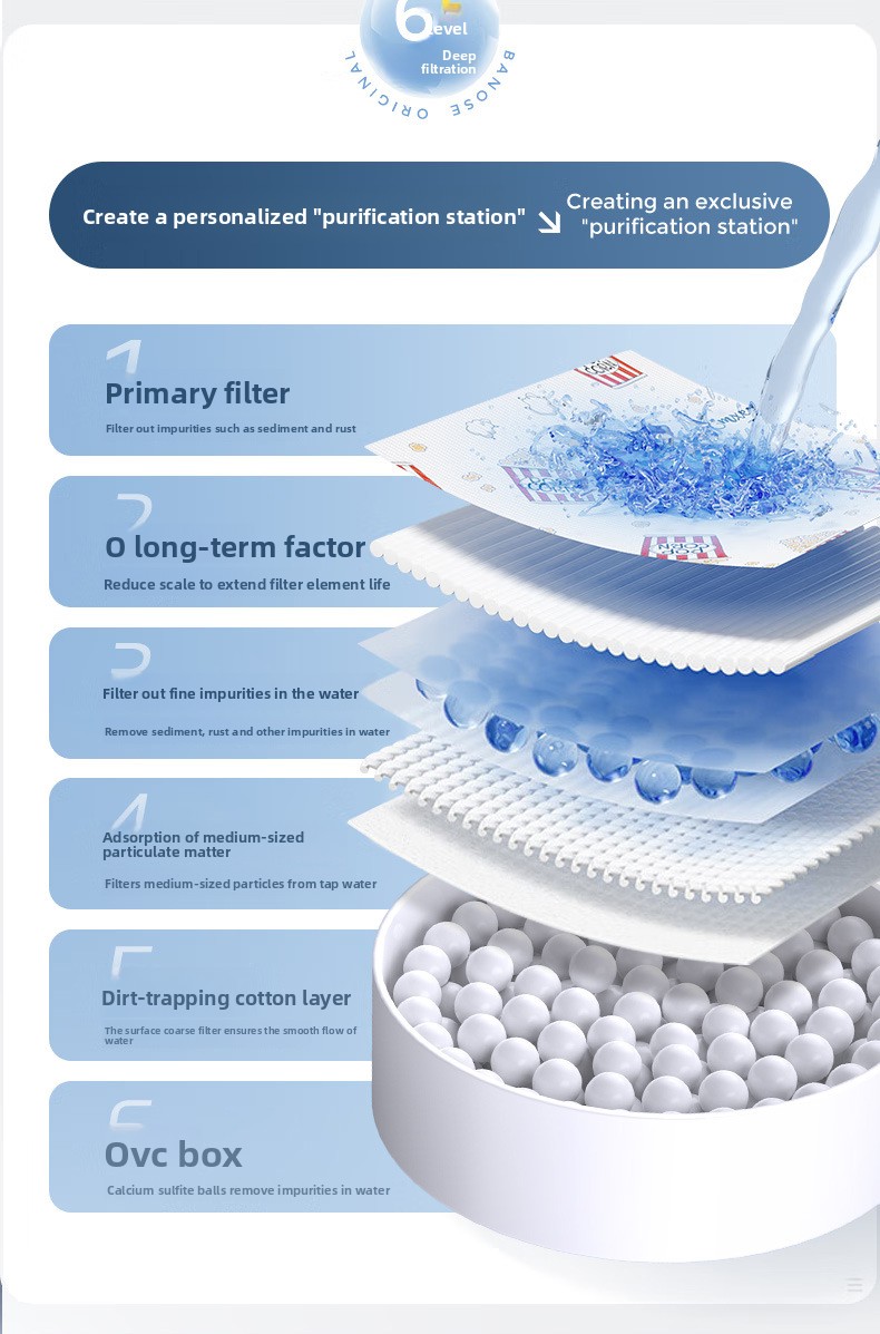 Water Purification: Filters chlorine and impurities for cleaner shower water.