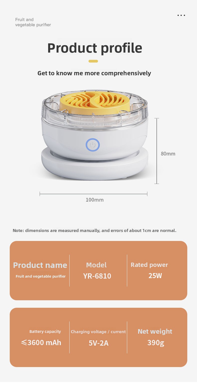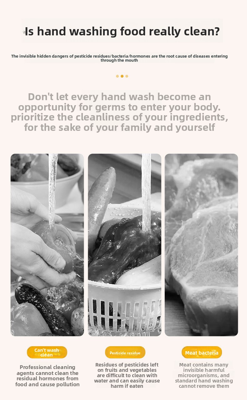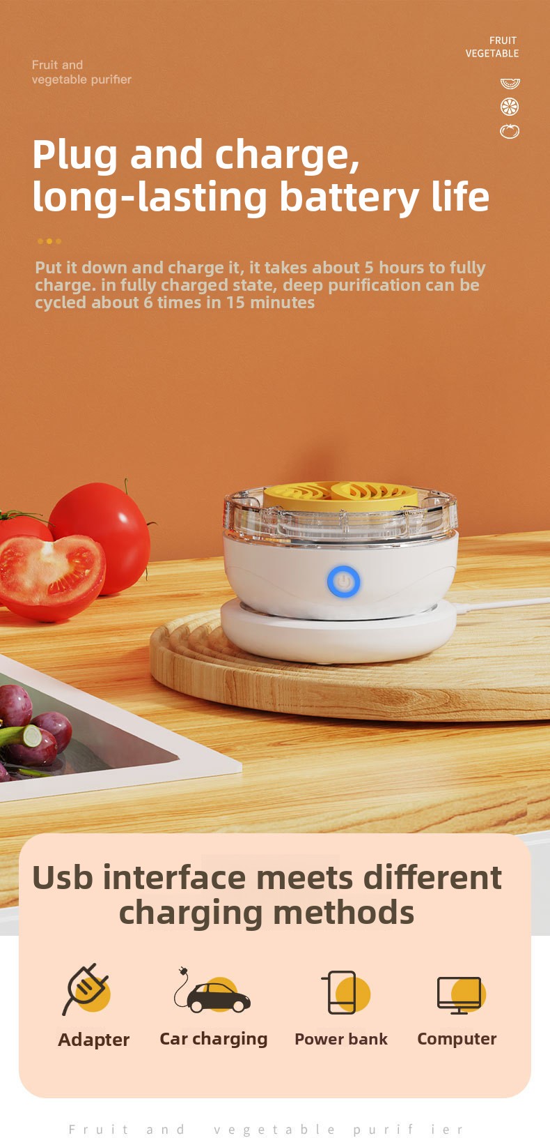 Purification Technology: Effectively removes pesticide residues and bacteria from fruits and vegetables