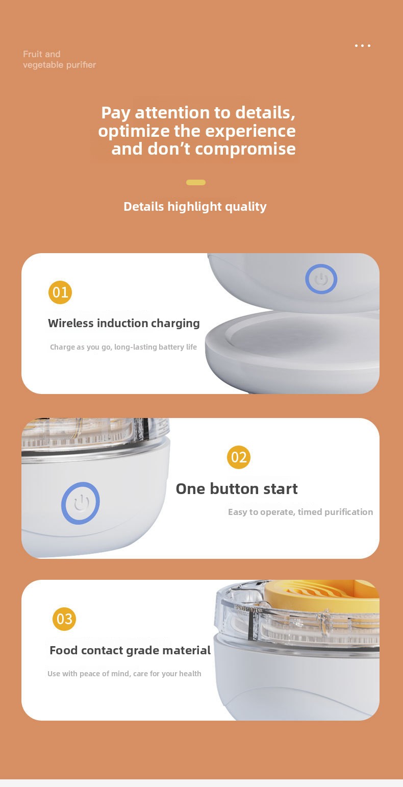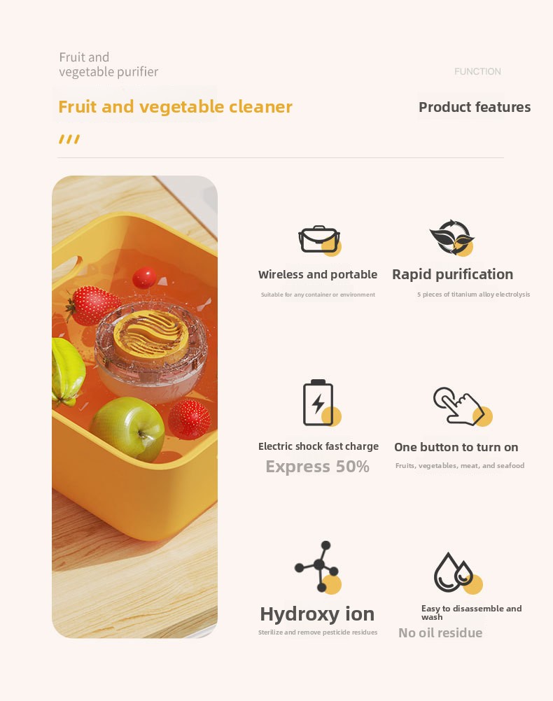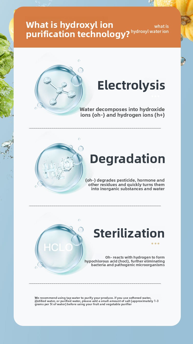 Purification Technology: Effectively removes pesticide residues and bacteria from fruits and vegetables