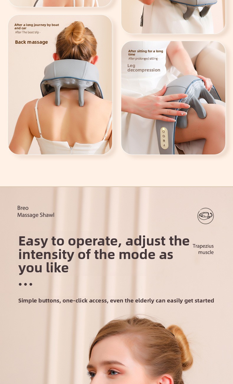 Adjustable Intensity: 4 gear levels to customize massage strength