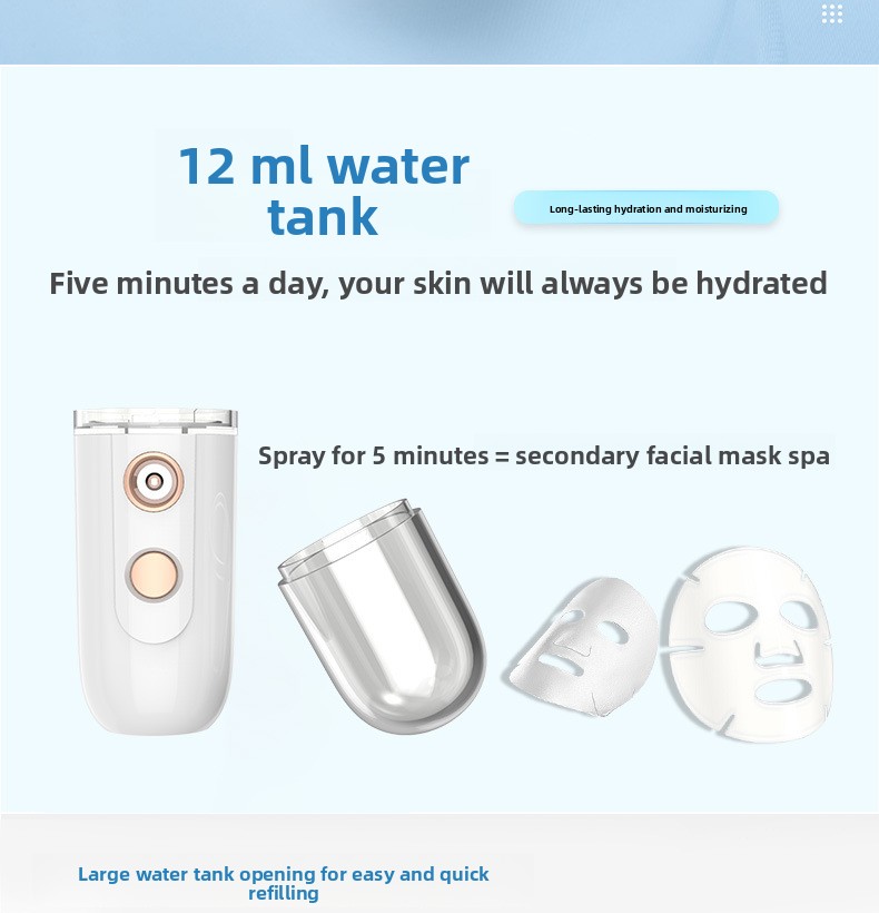 Nano Spray Technology: Delivers ultra-fine mist for deep skin hydration and absorption.