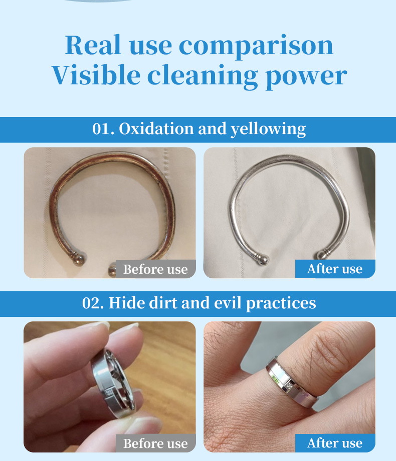 Efficient Cleaning: Quickly removes oil, black stains, and dirt from jewelry surfaces