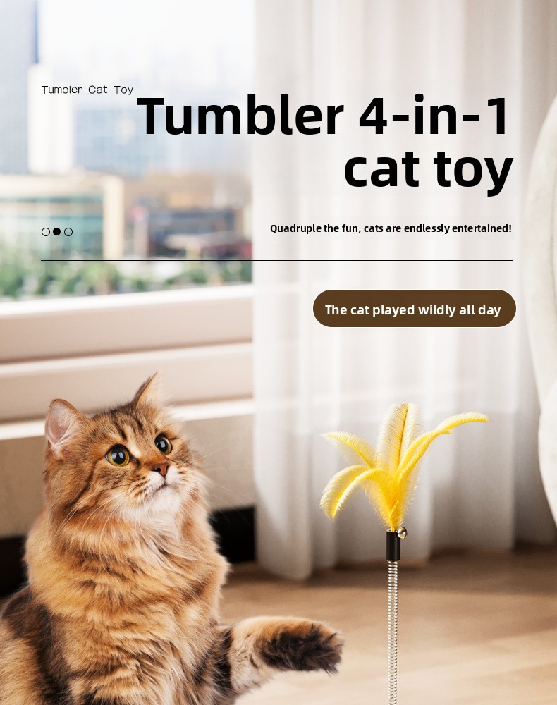 Feather Stimulation: Rotating feathers mimic prey movement, triggering cats' hunting instincts.