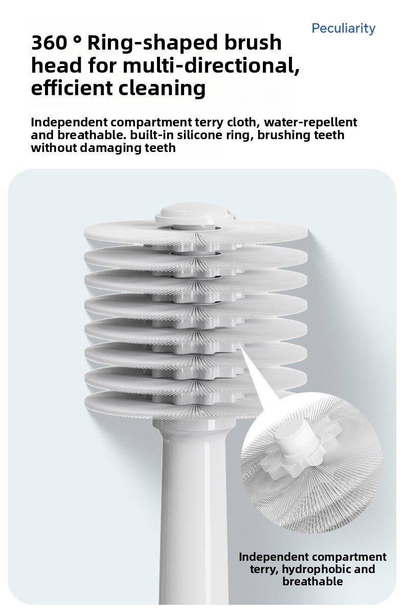 Soft Bristles: Gentle 360-degree brush head design suitable for sensitive gums.