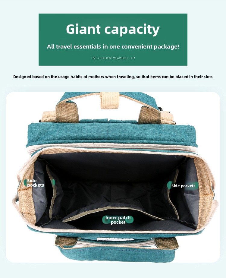 Multifunctional: Versatile usage as both a diaper bag and portable folding crib