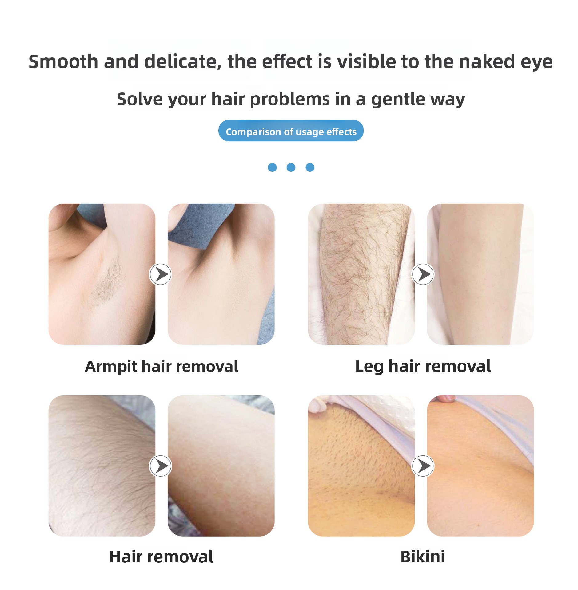 3D Floating Head: Dual-circle design adapts to body contours for precise and comfortable hair removal.