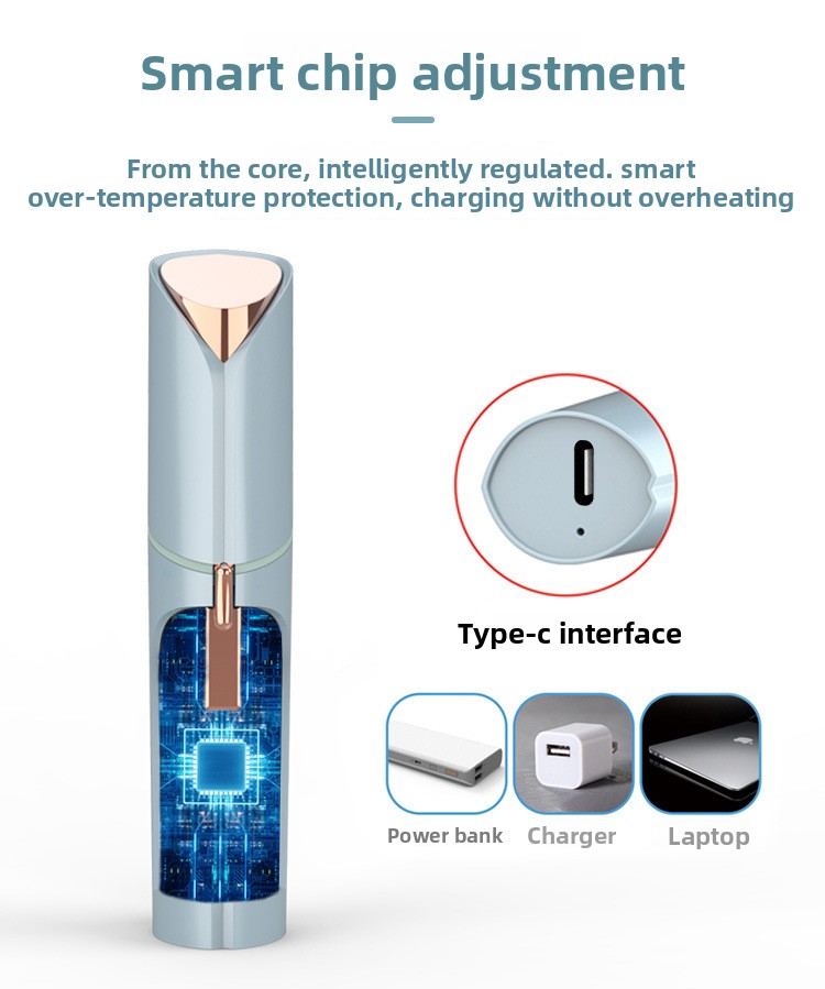 Compact Design: Lipstick-shaped body, lightweight and portable for easy handling and travel.