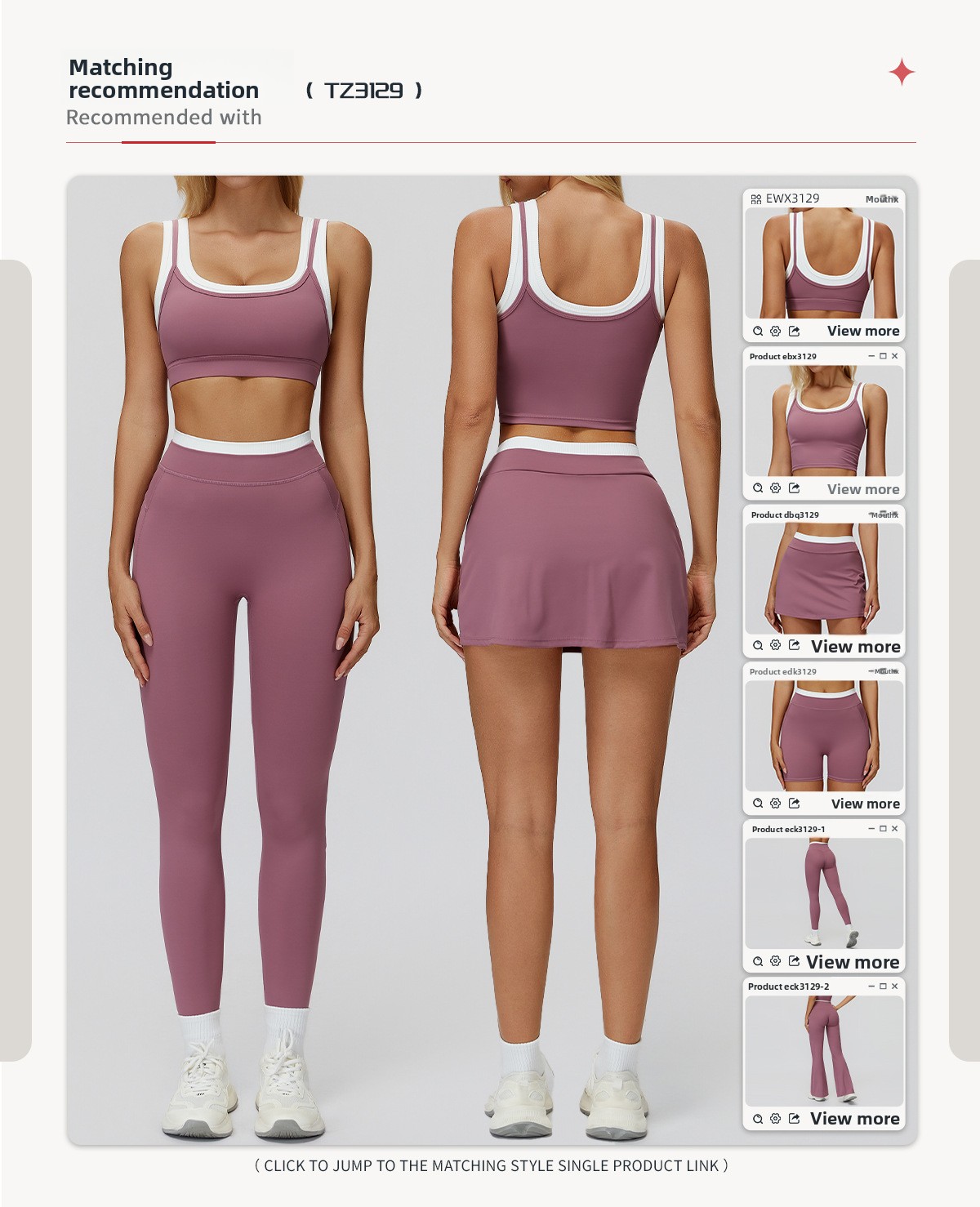 Bottom Types: Shorts, trousers, wide-leg flare pants, or skirt options