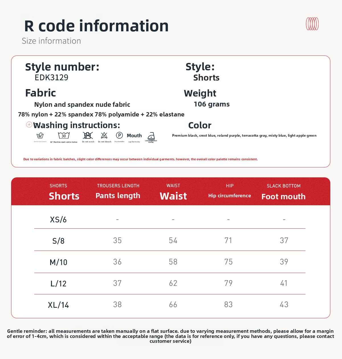 Material: 78% nylon, 22% spandex