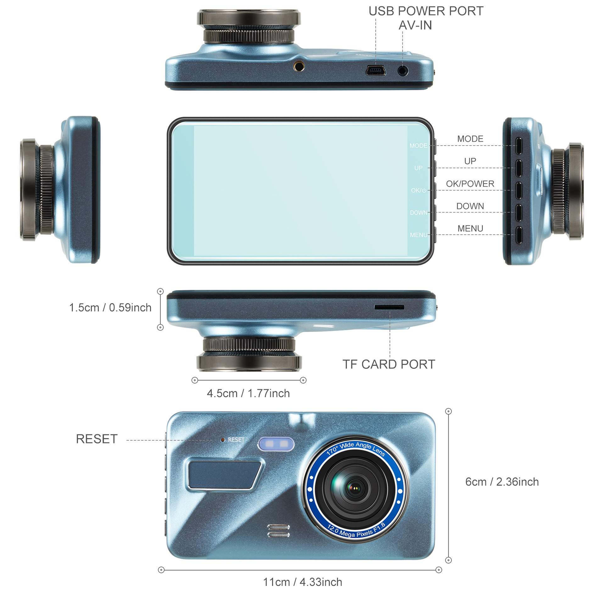 Dual Lens: Front and rear cameras for comprehensive recording coverage