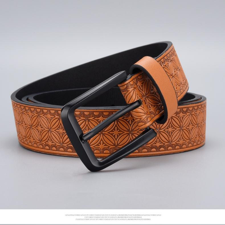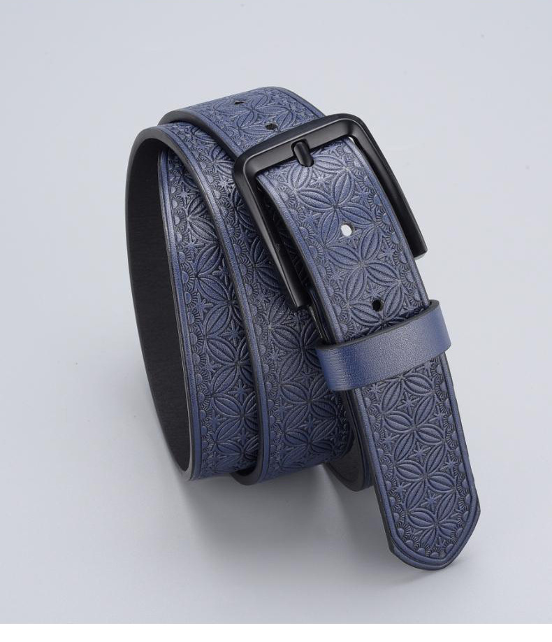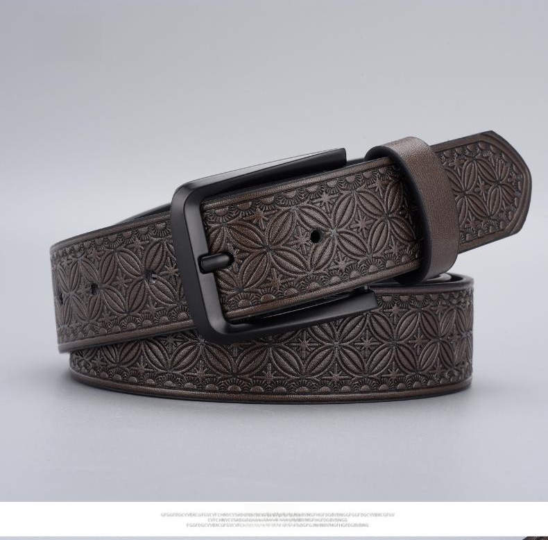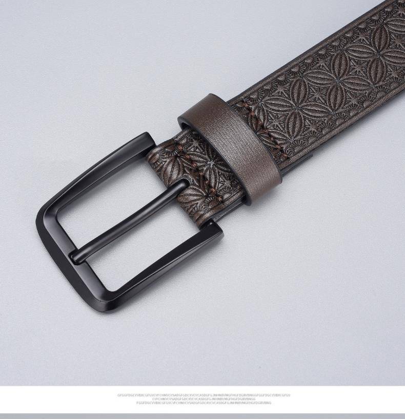 Mens Embossed Pin Buckle Leather Belt