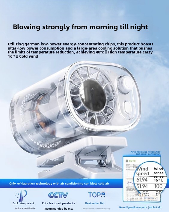 USB Rechargeable Car Cooling Fan with Adjustable Clip