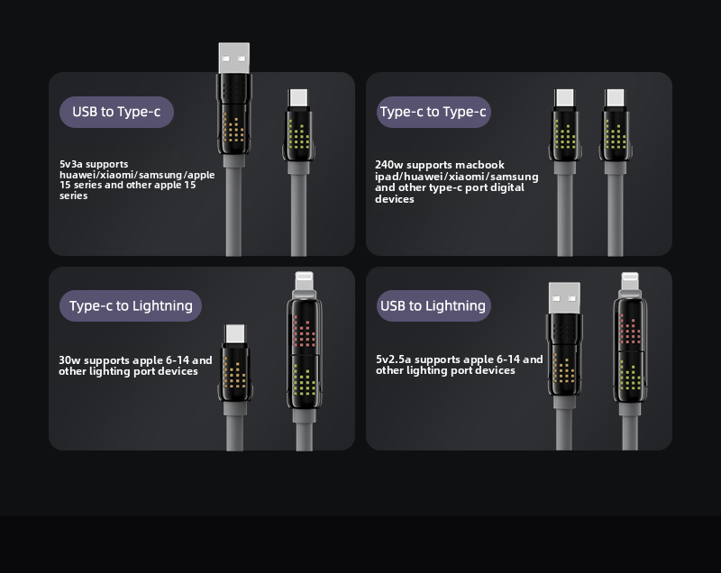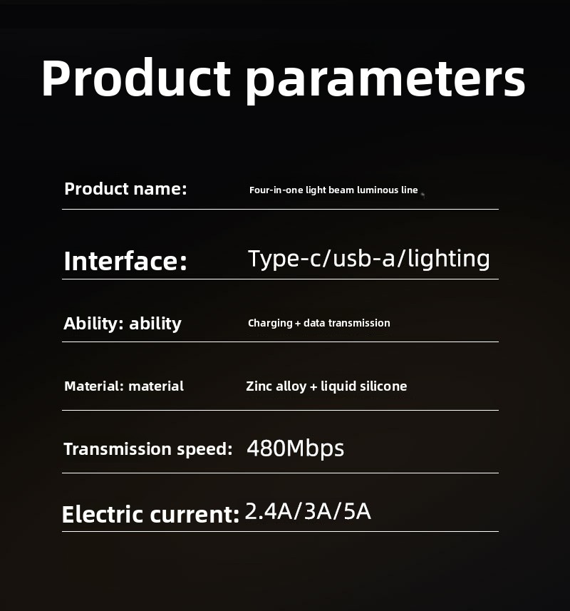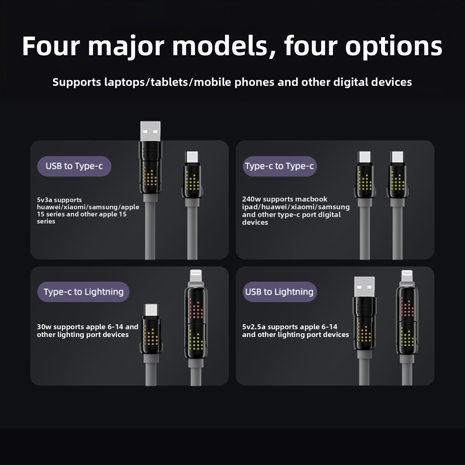 4-in-1 Functionality: Integrates multiple connector types into a single cable for convenience.